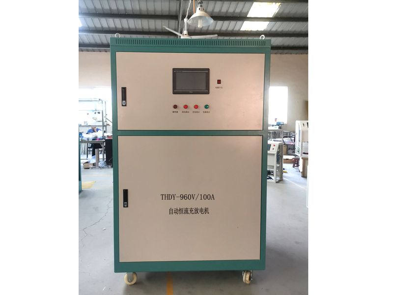 产品介绍:概述   THDY-10-系列硅整流充(放)电机,采用三相全控桥式整流;采用工业级触摸屏,英文显示,实时状态,不仅具有完好的人机界面,人机对话,操作方便,显示清晰易懂,而且功能强大,集充电、放电、循环充放、脉冲、温度补偿等多种工作模式于一体,触摸屏选用 7 英寸;系统特点   对电网无相序要求:A、B、C 三相输入任意接线(初步调试过程中,充电机报相序故障,任意调整2根输入线即可);  充电中途充电连接线脱落自动关机;  充、放电参数***设置好后,如以后充、放相同的蓄电池,每次只需确认而无需重新设置;  具有脉冲充电功能(能对落后蓄电池进行激活),脉冲宽度、幅度可变、可设置;  具有温度补偿功能,即充电机可以根据环境温度变化和蓄电池特性曲线调整充电电压;  放电时电能反馈到电网,清洁环保;  用户可在充、放电工作过程中对所有的参数工艺参数进行查看,避免误操作;  具有掉电存储功能,来电自动恢复到掉电前工作状态,实现无人值守;  具有暂停功能,确保连续运行;  具有多种操作方式:手动操作、微机控制、触摸屏控制、PC 机操作四种方式。  该硅整流电源既可以作为充放电机使用,也可以作为大功率电源使用。常用规格:  订货须知:  请注明型号,可按客户要求电压电流生产订制。